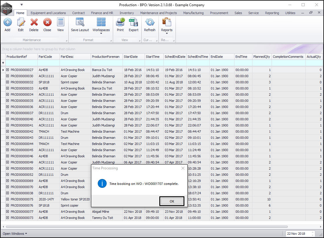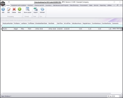 - Here you can view the Time Bookings (if any) logged against this work order.