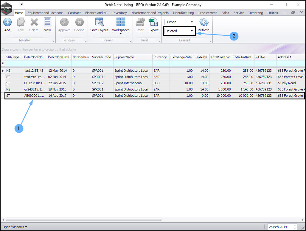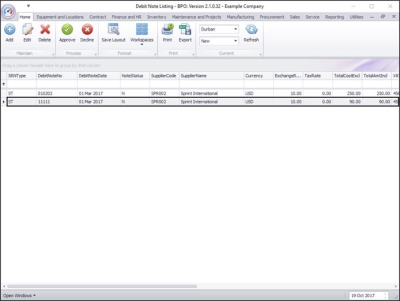 | Ribbon Access: Procurement > Debit Notes |
