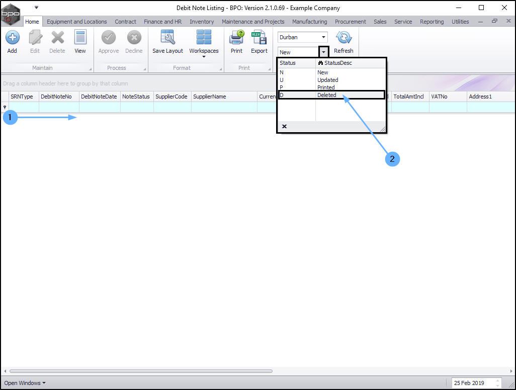 - In the Debit Note Listing screen,