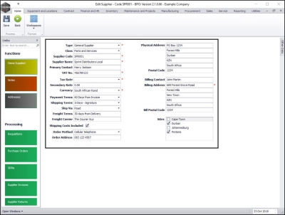 A supplier is anyone who supplies you with goods and/or services. Supplier types can be set up within the system to distinguish between your suppliers.