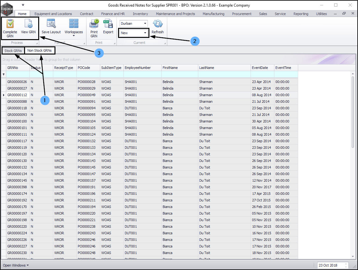 - you can either Complete or View a selected GRN.