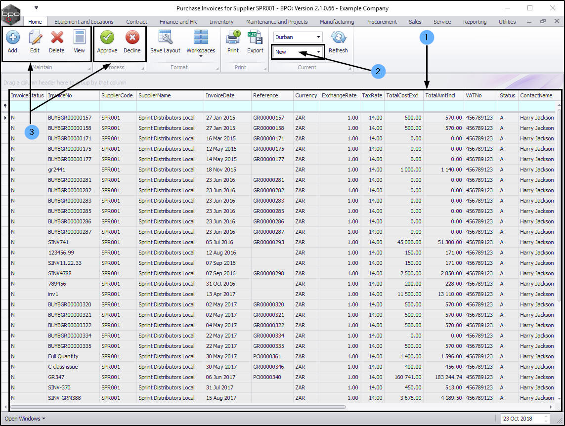 - you can Add, Edit, Delete, View, Approve or Decline a supplier invoice.