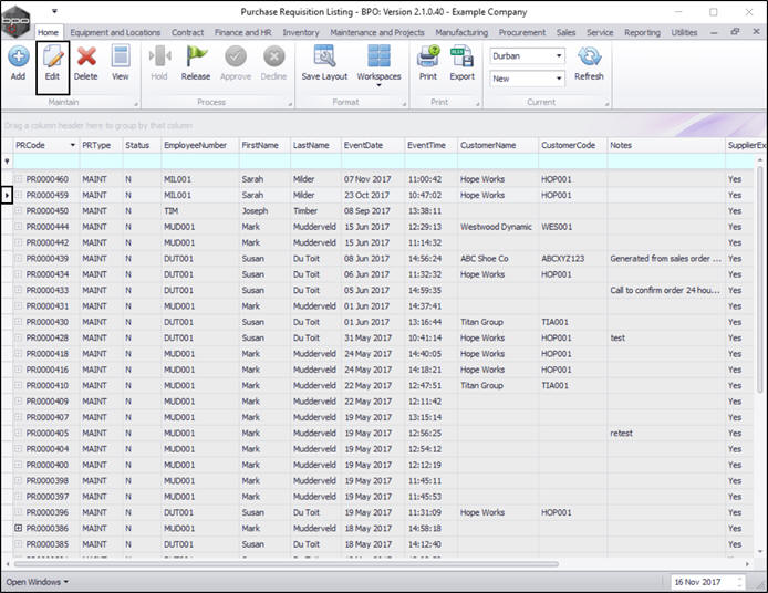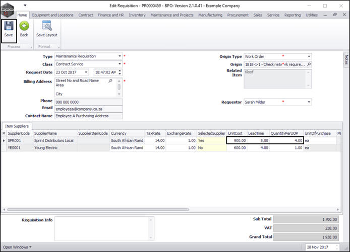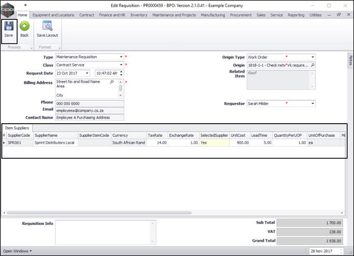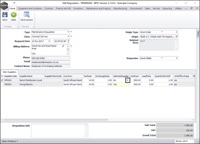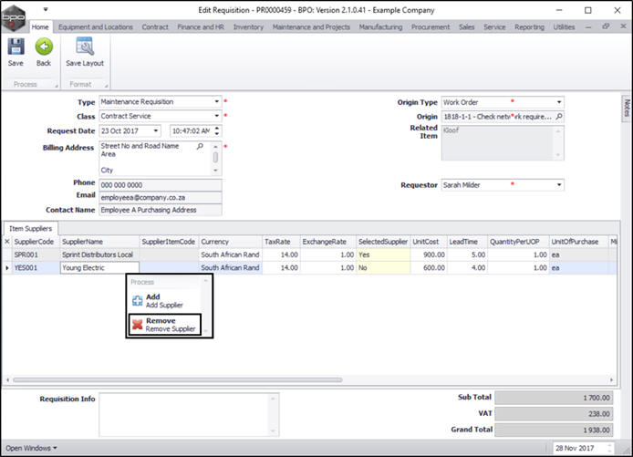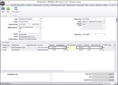 Once you have created a purchase requisition, you may be required to add, edit or remove a supplier, or make changes to the items supplied, e.g. change the price.
