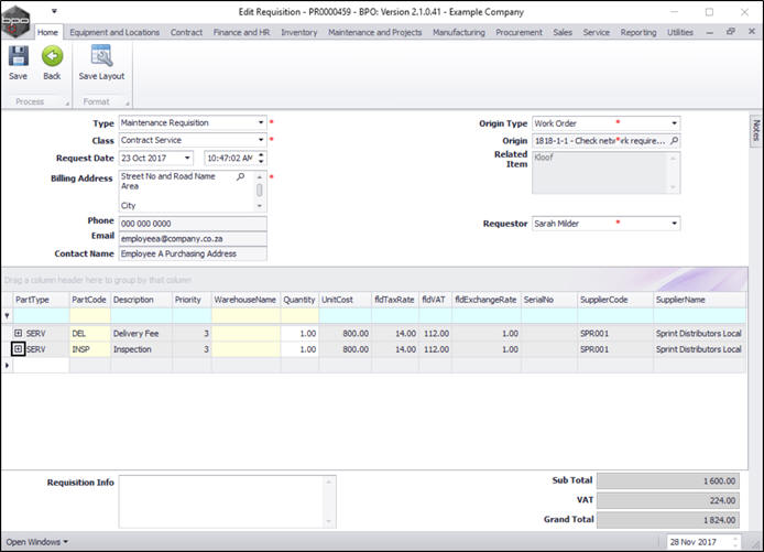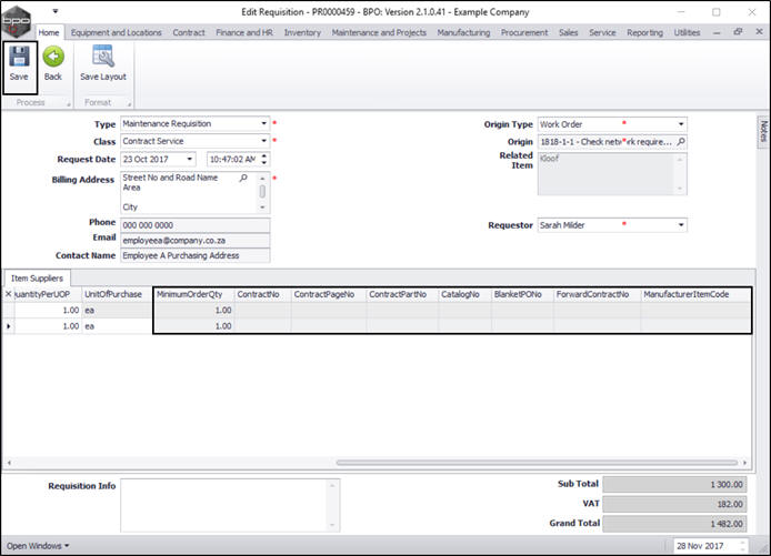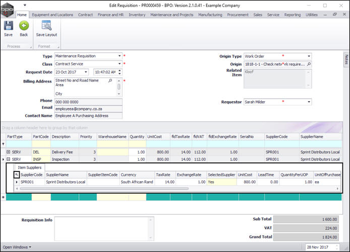 Requisitions - Add, Edit, Delete Item Supplier