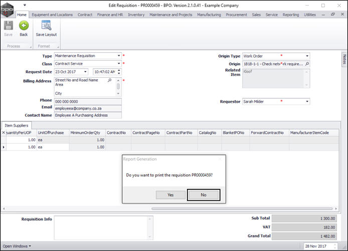 - Follow the directions as above if you wish to click on Yes to print the requisition.