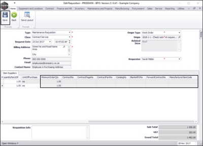 The Edit Requisition screen will be displayed.
