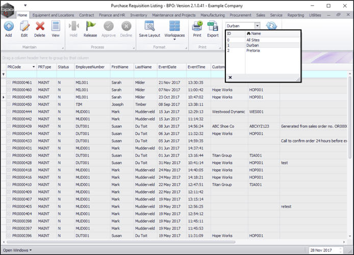 - In the Purchase Requisition Listing screen,