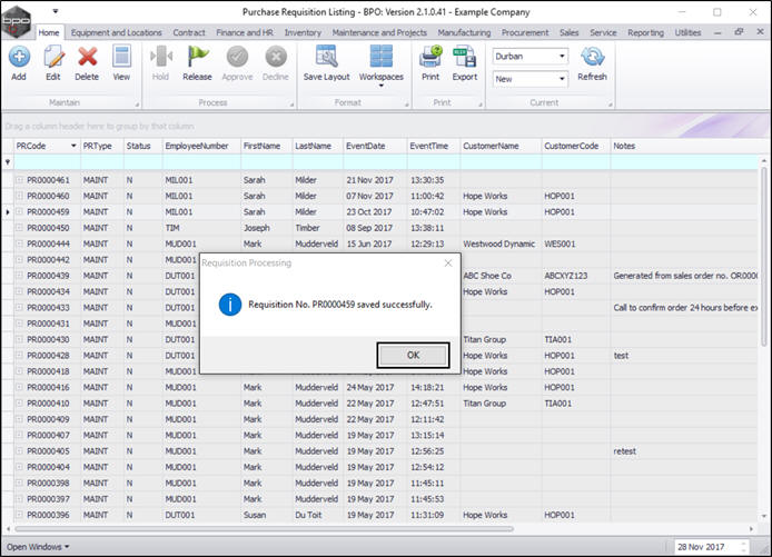 - Requisition No. [ ] saved successfully.