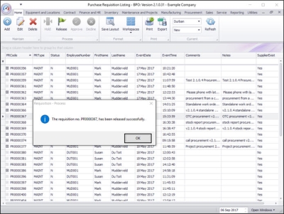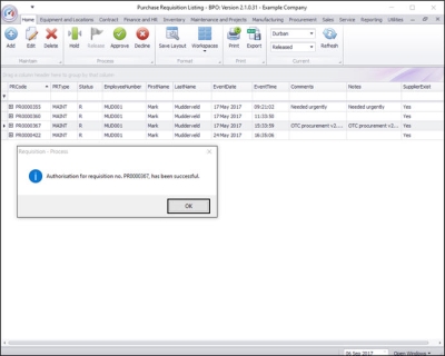 - A Requisition - Process message box will appear informing you that;