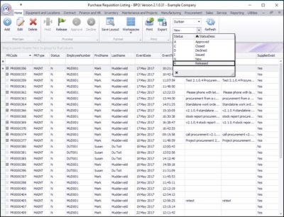 - The Purchase Requisition Listing screen will now only display the requisitions in the Released status awaiting Approval.