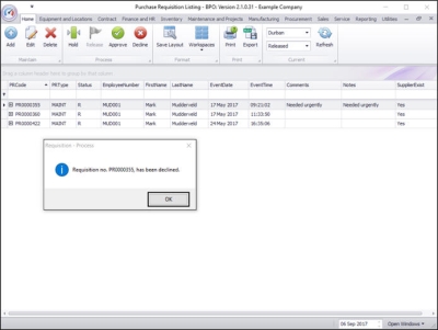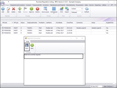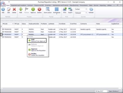 Purchase Requisitions must go through an approval process before a Purchase Order is created. (This can be linked to an Approval Matrix which is set up in the Purchasing Centre)