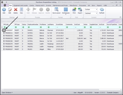 The Purchase Requisition Listing screen will be displayed.