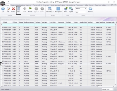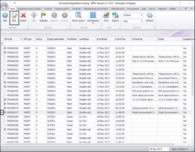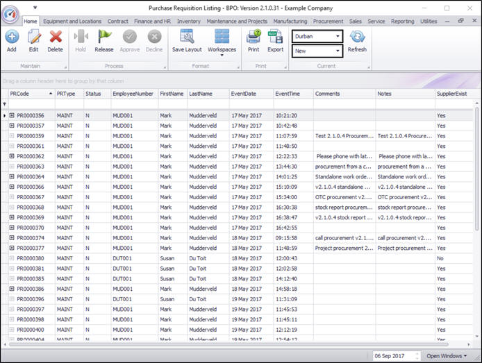 In the Purchase Requisition Listing screen,
