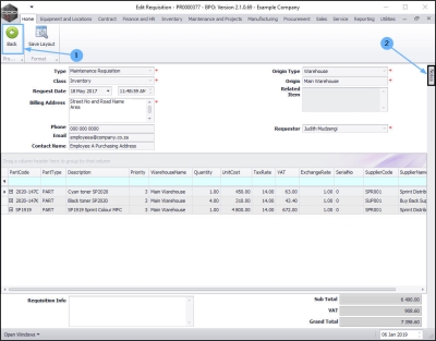 The Edit Requisition screen will be displayed.