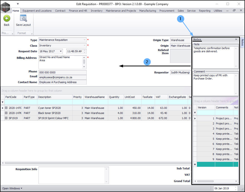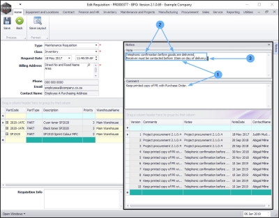 Requisition Notes and Comments