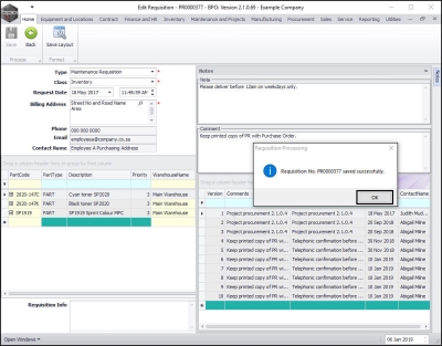 - Requisition No. [ ] saved successfully.