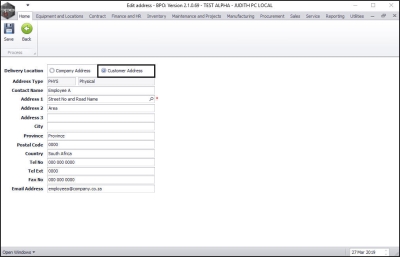 - Click on the Search button for more company/customer addresses.