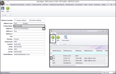 - The Select the address to be linked to this Purchase Order screen will be displayed.