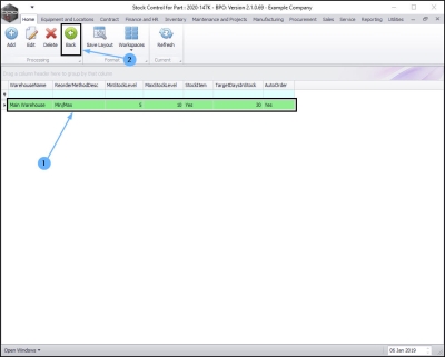 - Min Stock Level: Click in this text box and either type in or use the arrow indicators to select a minimum stock level quantity.