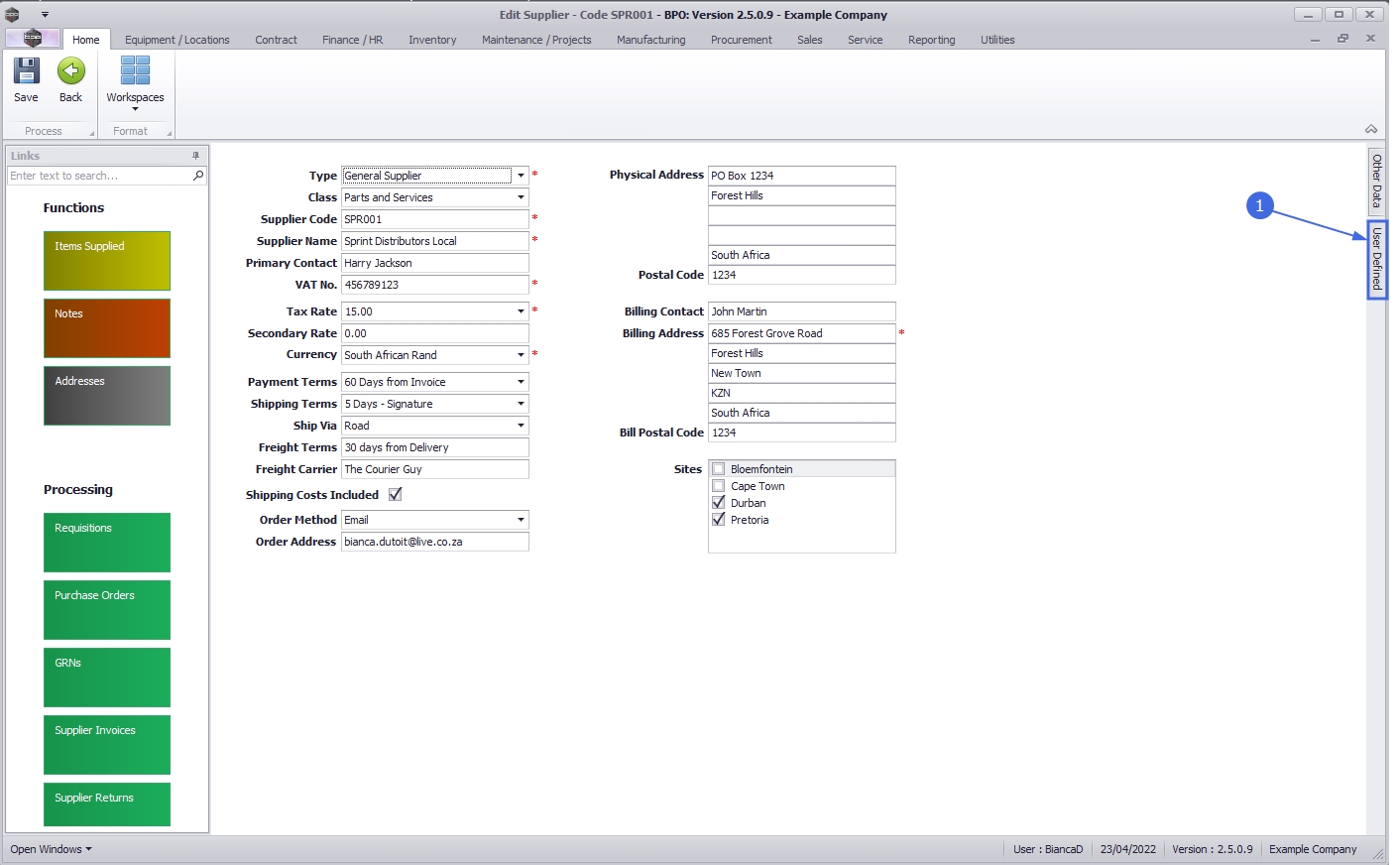 - When you have finished entering all the new Supplier details, click on Save.