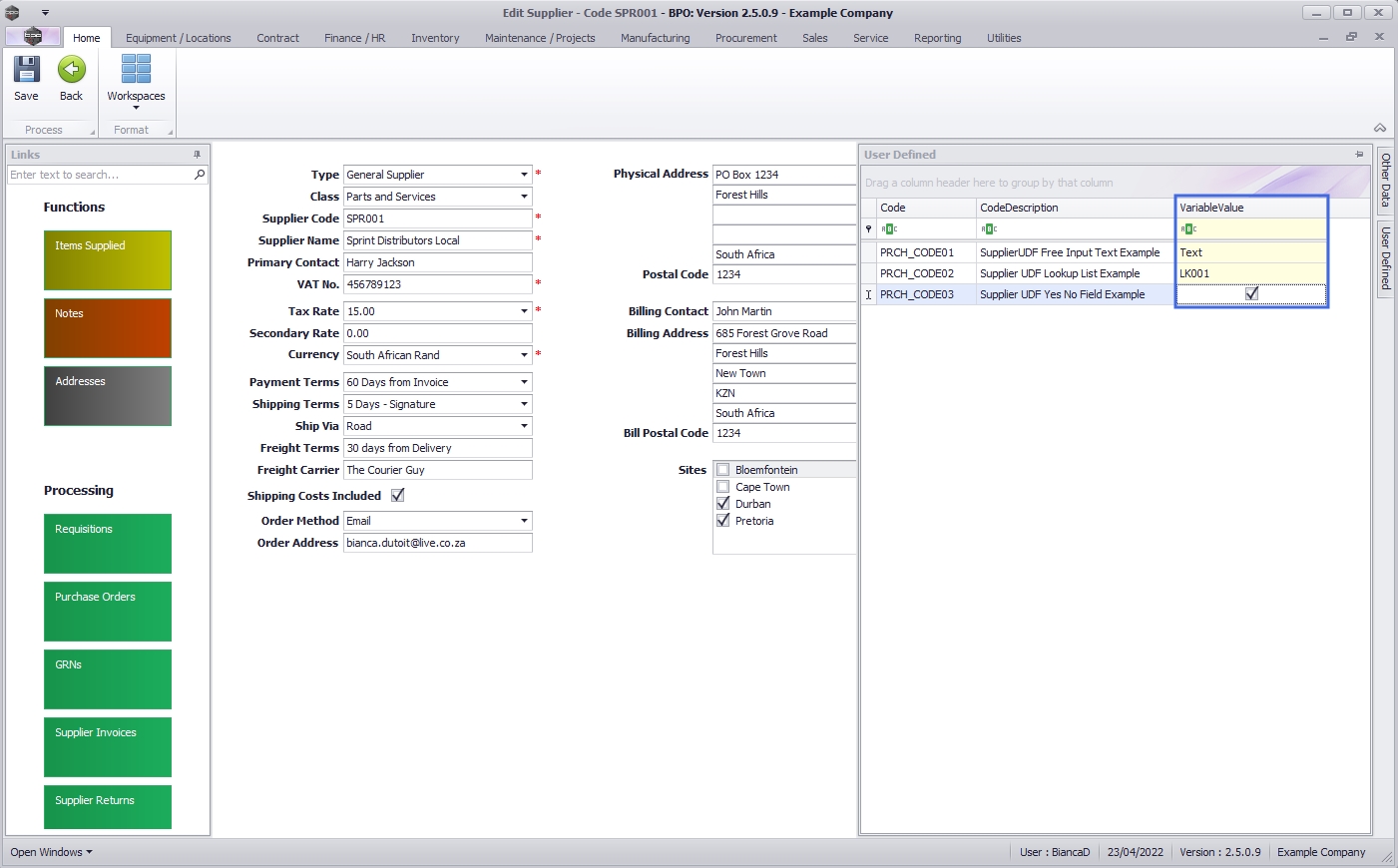 and all the supplier information and history will be linked to this code and not the Supplier Name.