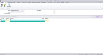 The Purchasing Template Maintain screen will open with the Type and Class pre-populated as noted below. These values cannot be changed.