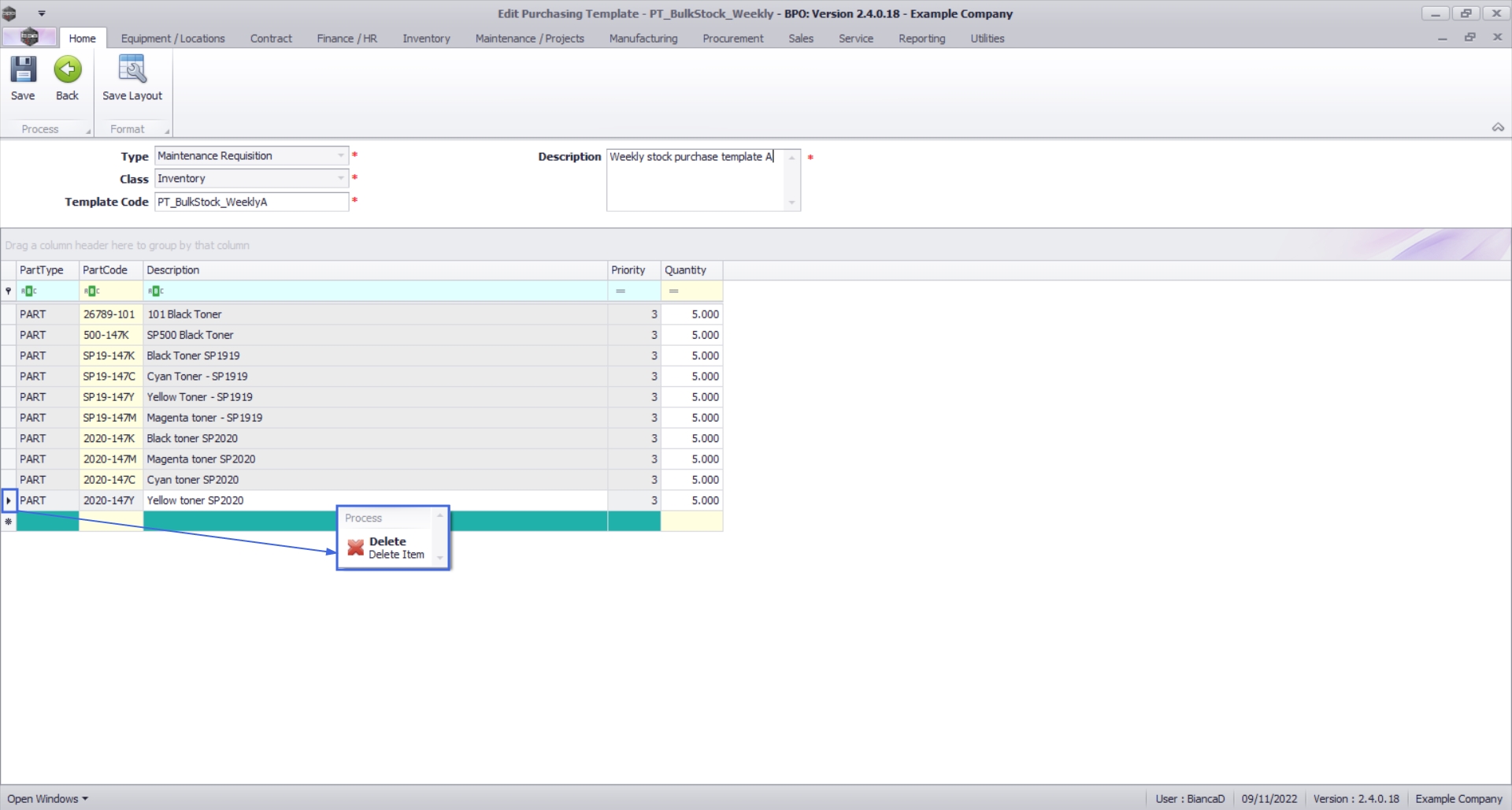 - Type: Maintenance Requisition