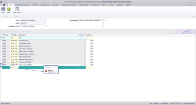 Search for an select the Part you wish to add to the template