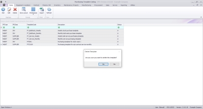 The template will no longer be available in the Purchasing Templates Listing screen, and is set to status (I) Inactive in the database.
