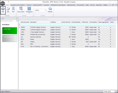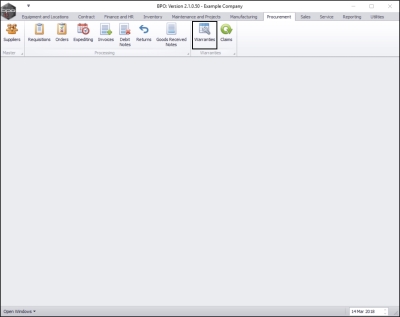 You can add any warranty that is placed on an item that you have received from a supplier, and link that warranty to the item. Follow the process below to add a new warranty definition to the system.