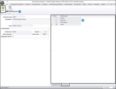 - The Warranties screen will now display a list of the Item Type(s), Code(s) and Description(s) linked to the selected warranty. You can also view the Start Date, Supplier Code and Supplier Name.