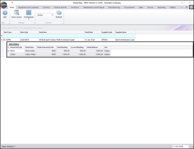 - Here you can view the linked item meters and their Warranty Units, Readings and Meter Balance.