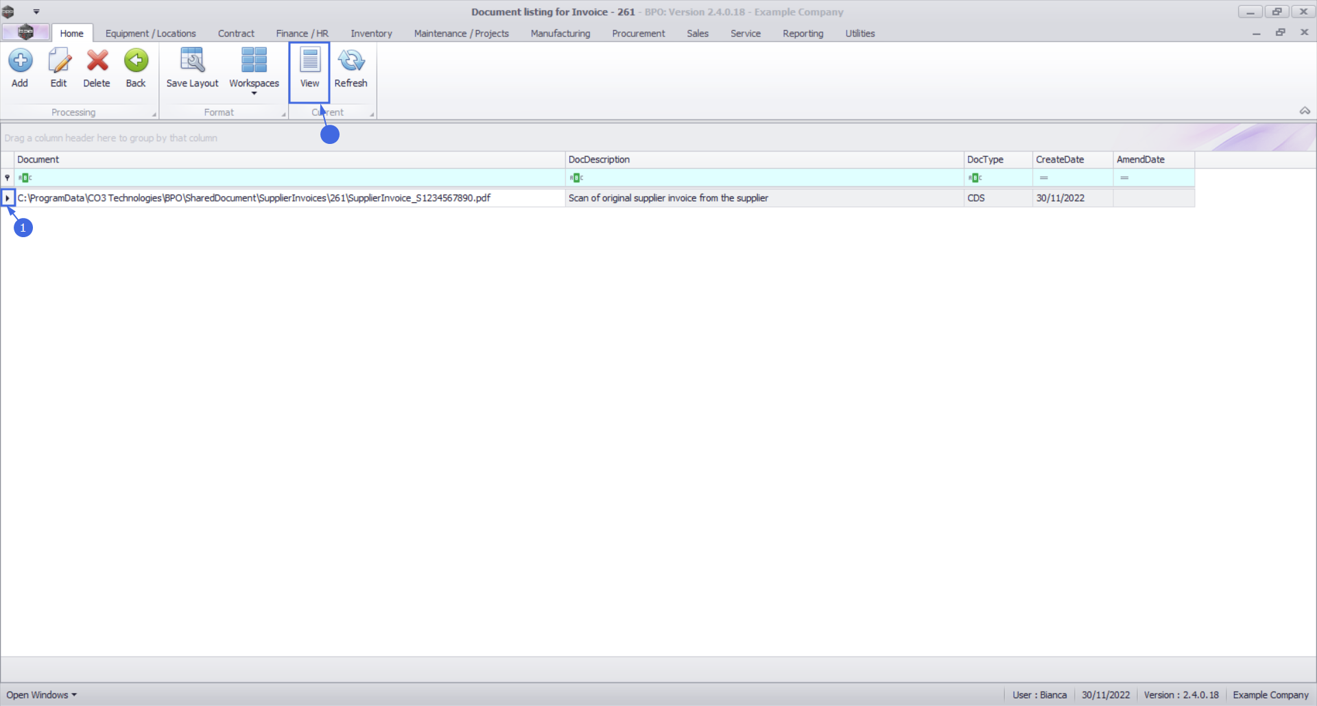 Ribbon Select Procurement > Invoices