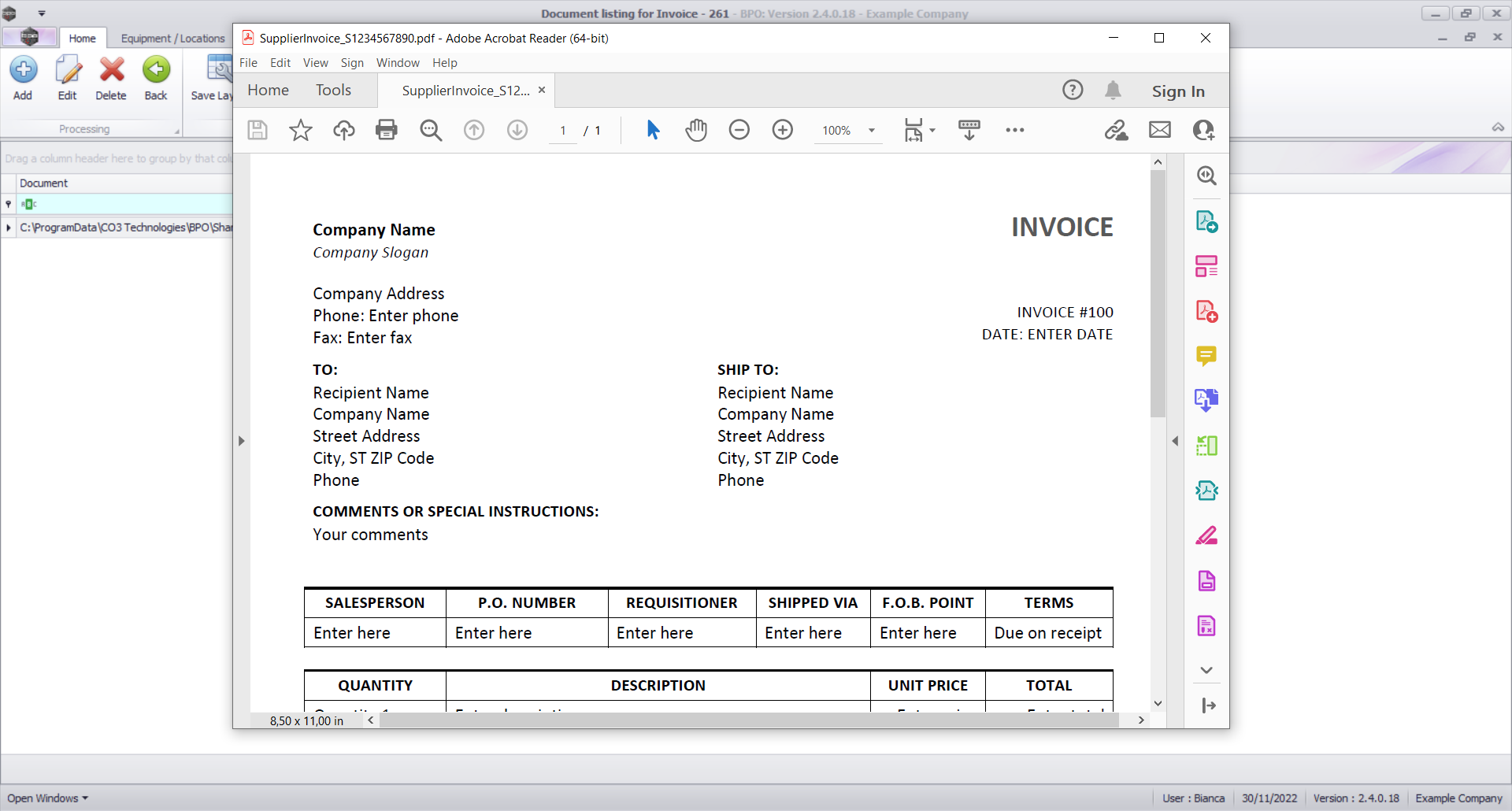 All digital documents are saved to a repository that is specified in BPO Configurator. Your company may have a specific shared location on the server where all these documents can be stored, that the relevant windows users have access to.