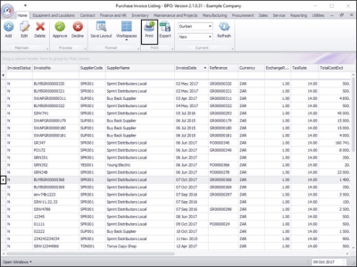 - Click on the row selector in front of the supplier invoice you wish to print.
