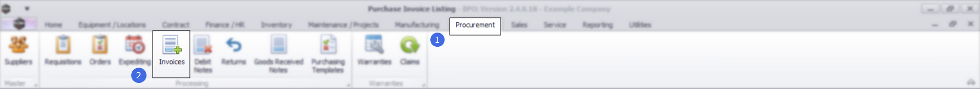 Ribbon Select Procurement > Invoices