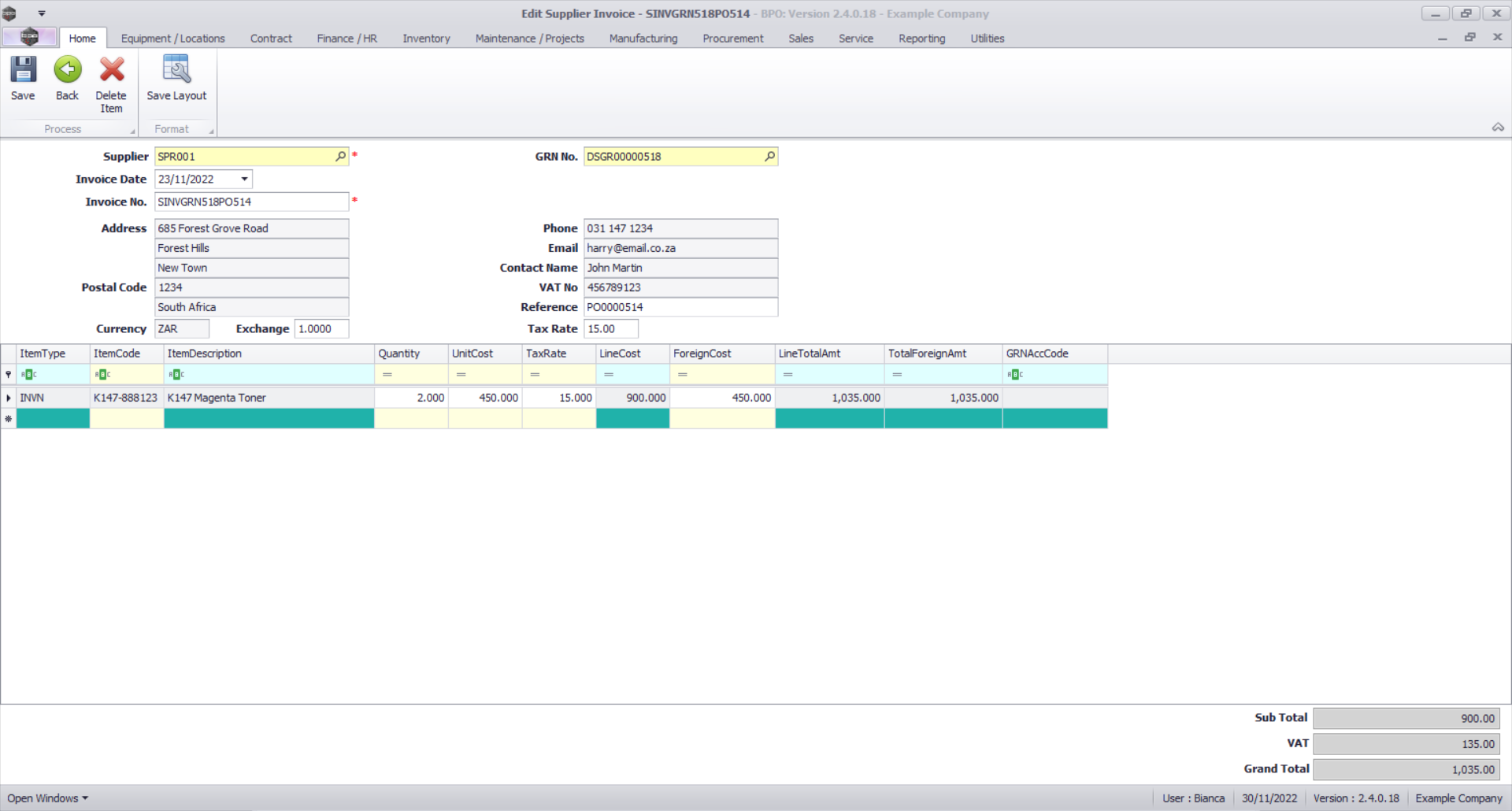 However, in this instance, we are creating the Supplier Invoice after the GRN has been processed. Therefore, checking these costs against the Invoice from the Supplier is important.