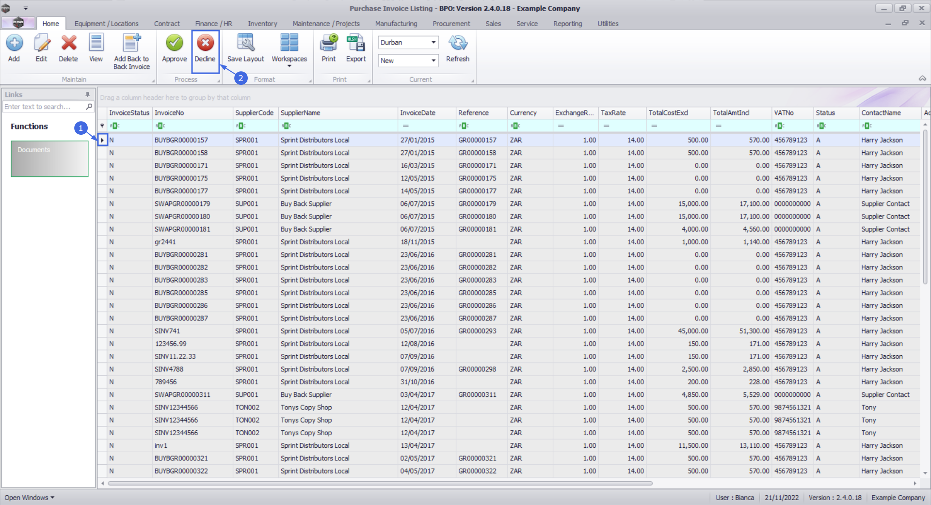 If the Supplier Invoice was incorrectly created, it can be Declined. This will reinstate the associated GRN and you can Add the Supplier Invoice again.