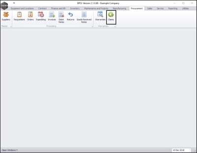 | Ribbon Access: Procurement > Claims |