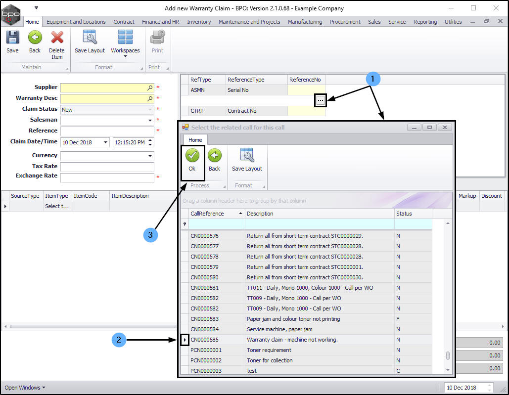 - A Warranty Module - Claim Generation message box will pop up informing you that;