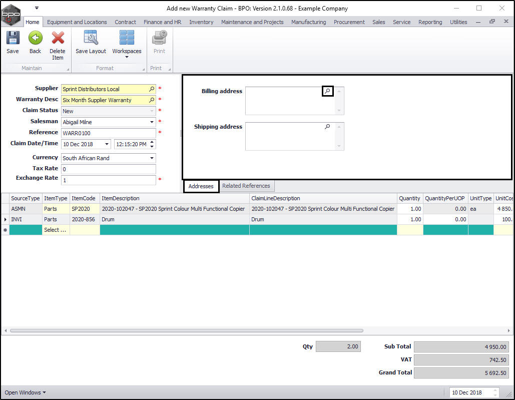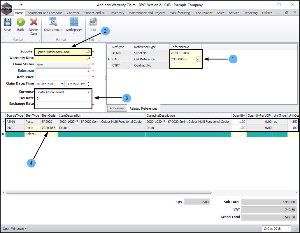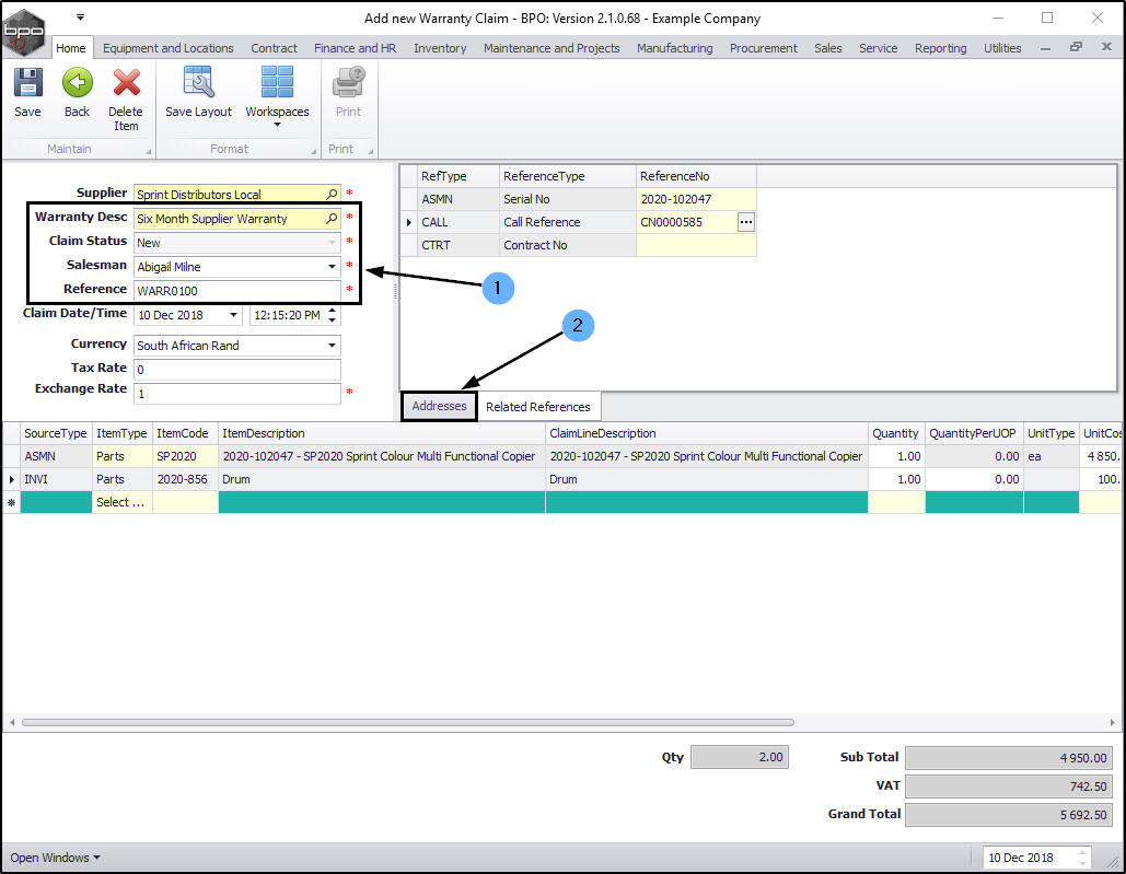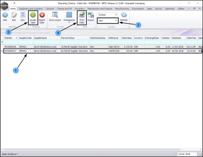 - The new warranty claim will display in this screen