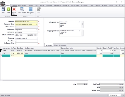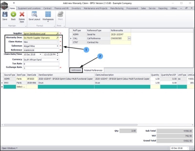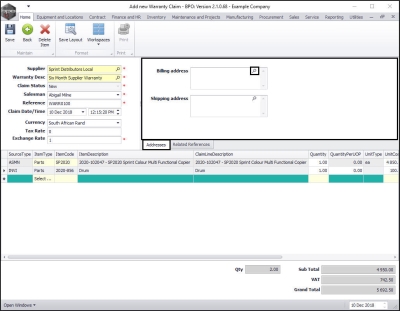 Add Warranty Claim Details