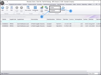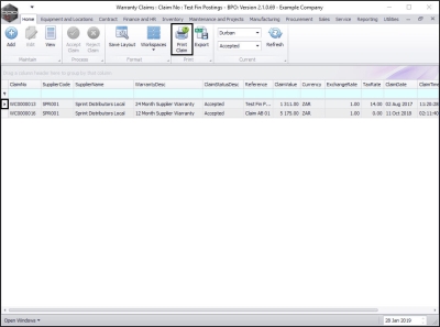 The Warranty Claims: Claim No: [ ] screen will be displayed.