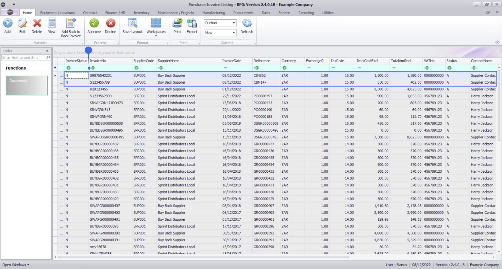 You now have the ability to load multiple supplier invoices that big companies tend to send and match them by grouping lines into said invoice number as per the supplier's schedule thus decreasing time taken to create invoices separately.