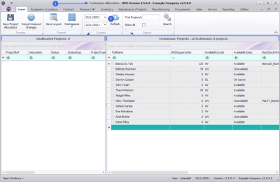 The Technician Allocation screen makes it easier to group projects together per Technician.