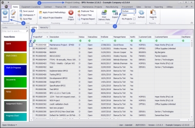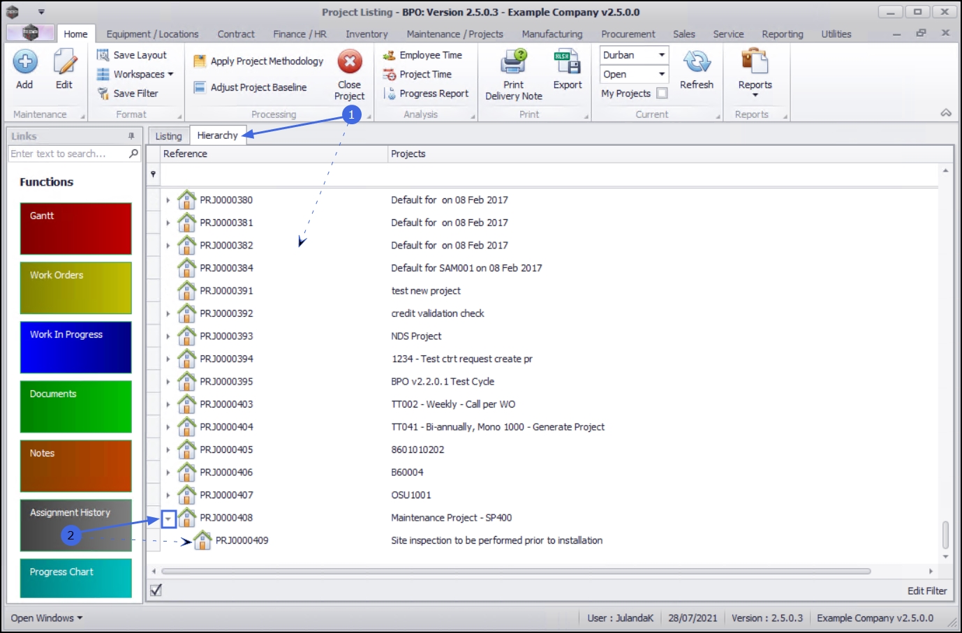 - Click on the Hierarchy tab to display the Project Listing screen in Hierarchy view.
