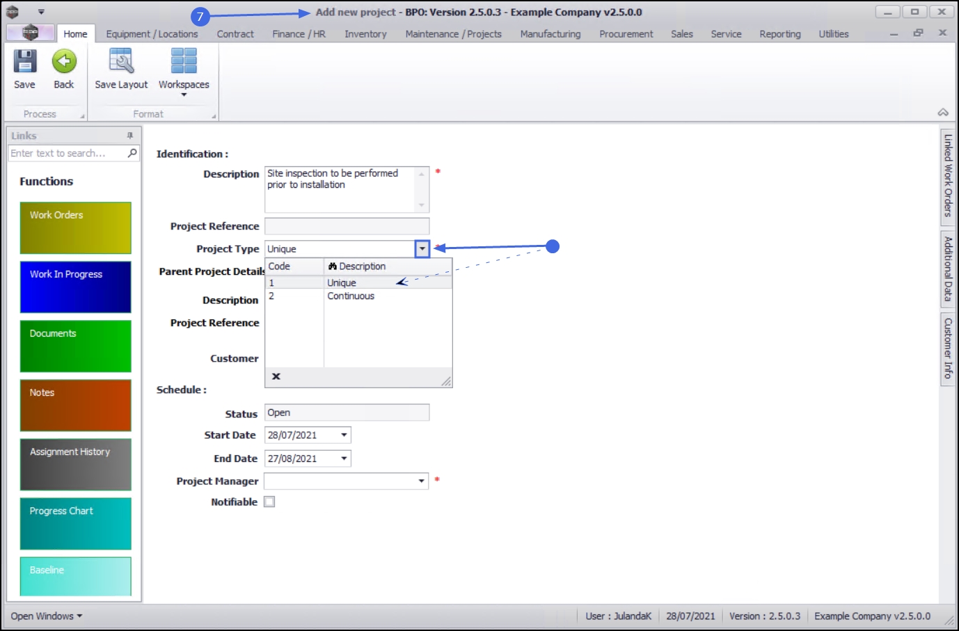 - Project Manager: Click on the down arrow to select the name of the project manager for the project.