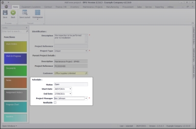 - Customer: The customer field has been auto populated with the customer selected on the main project. You may wish to change the customer for the sub-project, if you are linking the sub-project to a different customer.