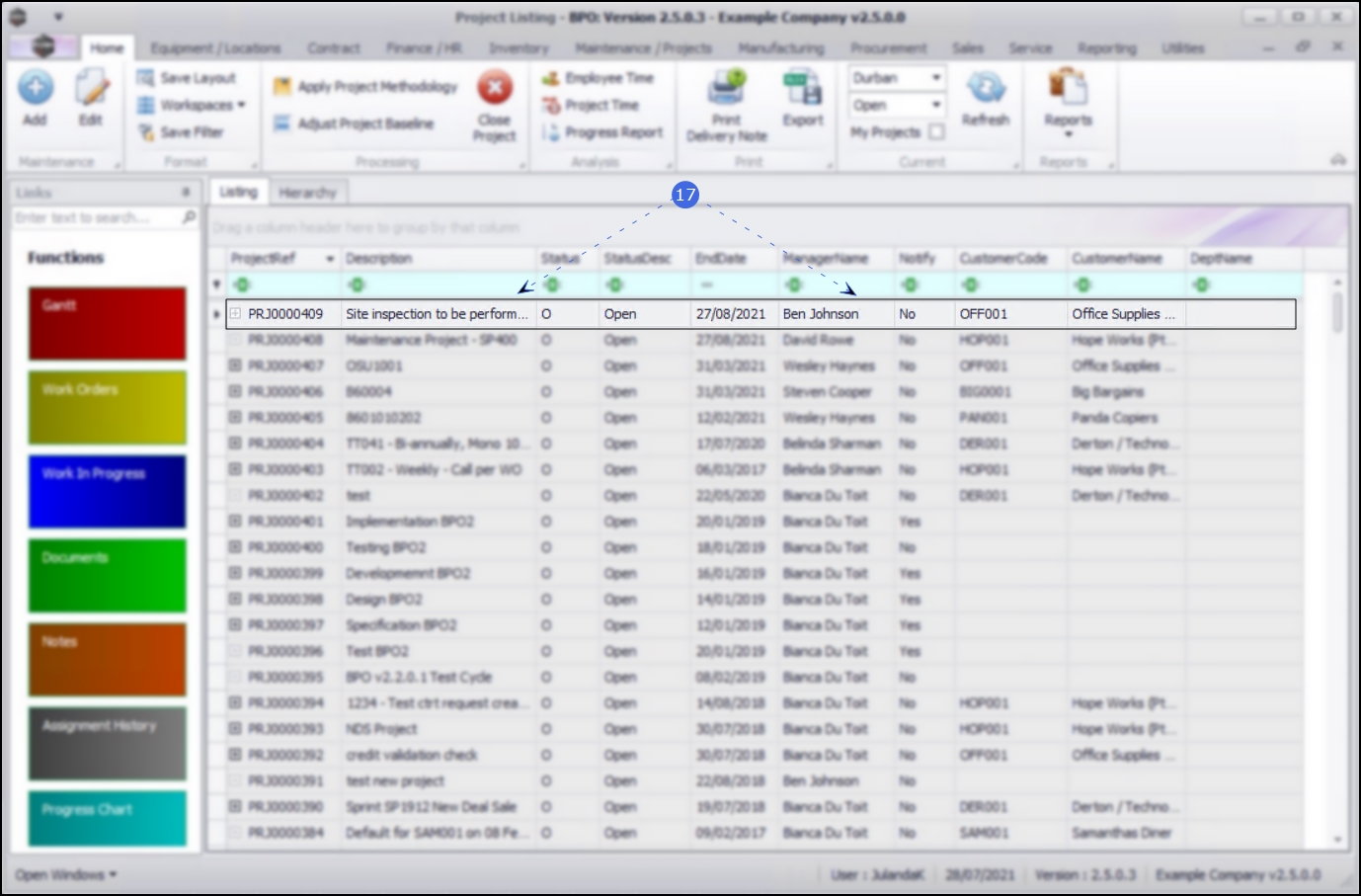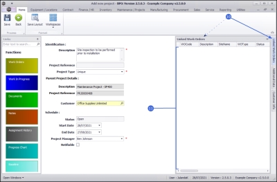 This panel can be docked to leave it expanded on the screen, which will make it easier to work in. - Any work order(s) linked to this sub-project will display in this frame.