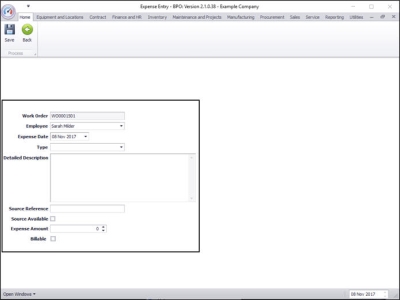The Expense Entry screen will be displayed.